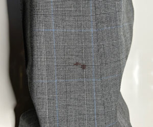 さて、血液の染み抜きですがちょっと時間経過しているのであまり無理し過ぎると生地に穴が開くなど風合いも変わってしまう可能性があるので、生地に負担を掛けないよう酵素処理を行いました。