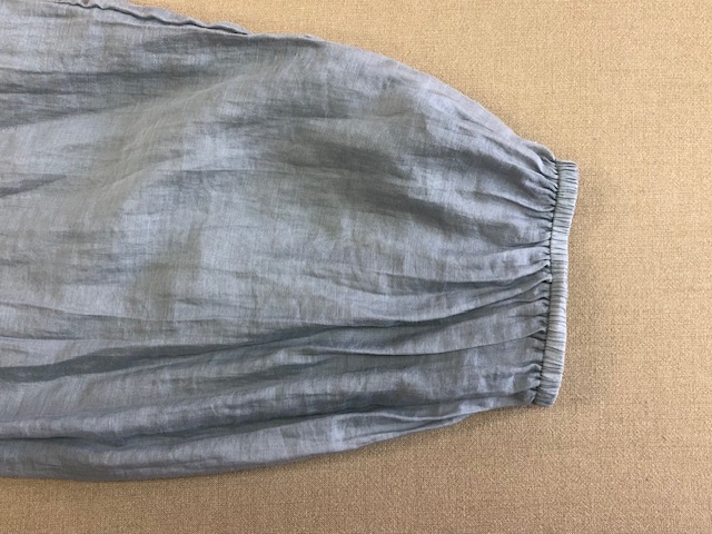 麻素材で色落ちや白化しやすい柔らかい生地です。