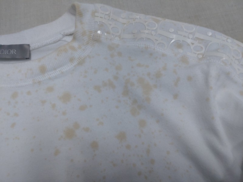 今回のご依頼はディオールのTシャツに飛び散ったコーヒー汚れの除去依頼です