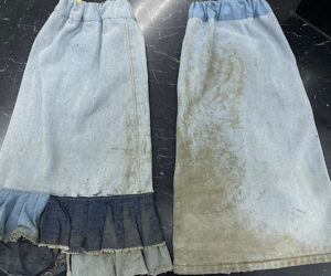 間違った方法でしみ抜きをしてしまうと、泥が生地の奥に入り込んでしまい、取り除く事が難しくなってしまいます。