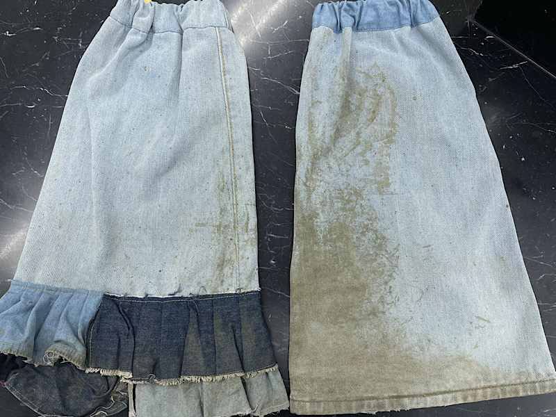 雨の中でパフォーマンスした際、レッグウォーマーが泥だらけになってしまったので、キレイにしていただけますか?とご相談いただきました。