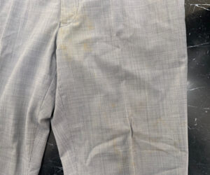 本日のご依頼は、ズボンの股下の黄変のしみ抜きのご相談をいただきました。