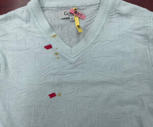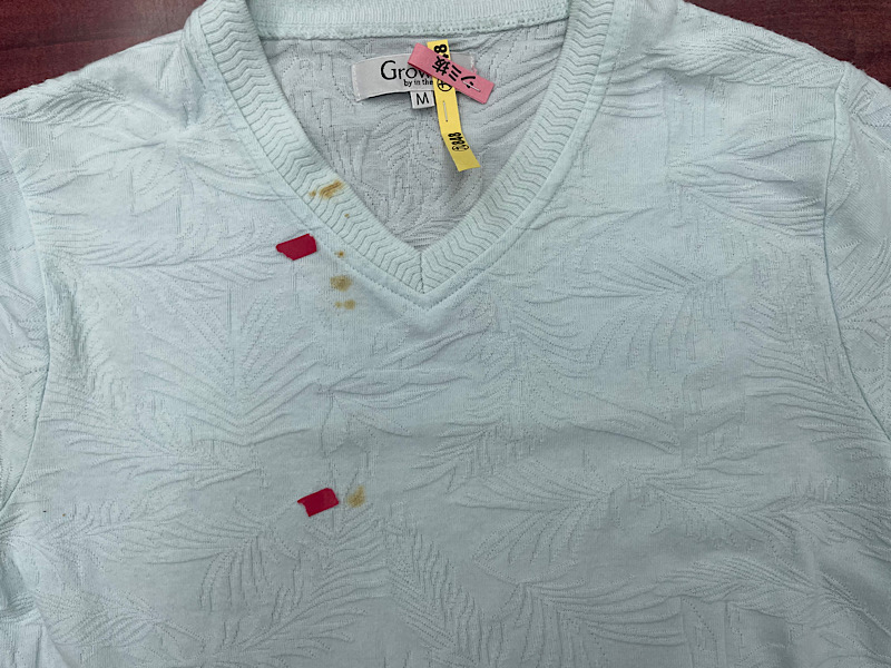 本日のご依頼はしばらくしまっておいたカットソーにシミがついているので、キレイにしていただけますか?とのご相談をいただきました。