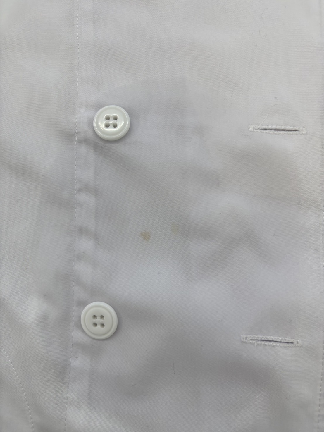 白衣の生地や数ヶ所のシミの状態を丁寧に確認し、