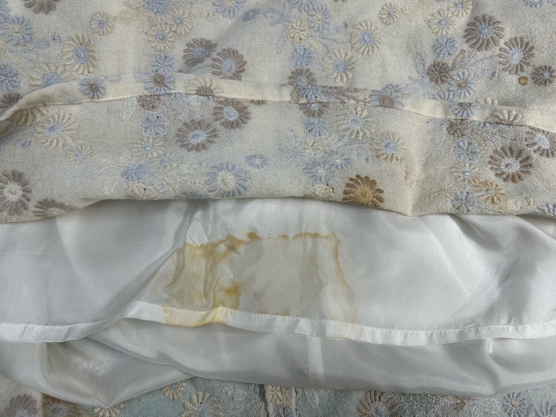 お洋服の整理をしていたところ 奥様のワンピースの裏地に黄色のシミに気づいてのご相談です。