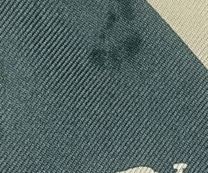 今回はHermèsのリボンに焼き魚を食べた時、魚の油が飛んで付いたとのことです。首に巻いていると、食事の時に付いてしまうことはありますね。このような衣類を使っている時の食事は、気を付けてください。お客様もブランド品なのでご自分で何もしないで早く来店されたので、割と簡単に落とすことが出来ました。とはいえ、油にも色々な種類がありそれに合わせて薬品を選び、布地は絹なので糸が細く細心の注意が必要で布地に最適な方法で染み抜きを致しました。 いつも、このホームページで書きますがシミを見つけたら、迷わず愛知洗い人のお店に相談してください。