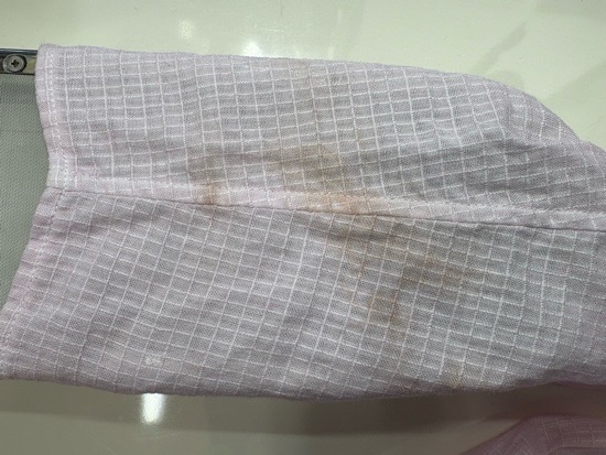 本日は、デニムに付着した機械油のしみ抜きを紹介します。