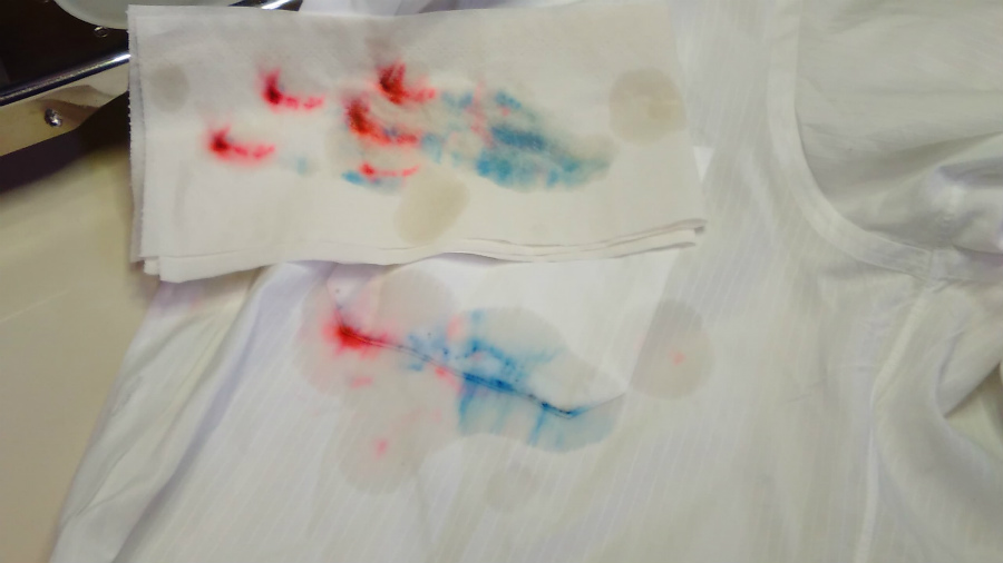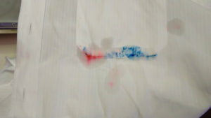 もしかしてと思い、赤インクを取るための薬品を塗ってみたところ、ものすっごい勢いで青インクが……( ̄∇ ̄)ヒェ~