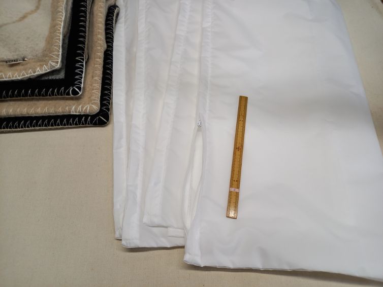 フェザーのタップリ入ったクッションが、専用ニットカバーをかけても【チクチク】してしまうと言うご相談でしたので、ダウンジャンバーのパックをイメージしてナイロン生地でインナーカバーを作ってみました♪