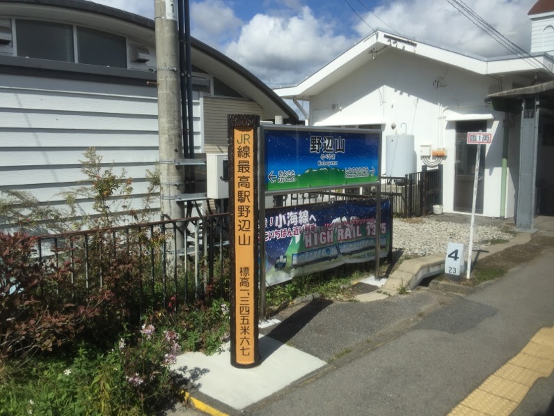 どんどん標高を上げながら坂を登り、清里辺りではペンションや別荘地の中を走って行き、野辺山駅手前では、JR最高地点のモニュメントを車内から撮影したりして、今回乗車した列車の名前でもある標高1375 mのJR鉄道最高地点駅の野辺山駅に到着しました。