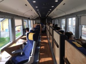 今回、店主の私が乗って ハイレール1375 は2両編成の全席指定席です。とても乗車定員が少ないので乗車予定日の1か月前の10時に、みどりの窓口のあるJR駅で購入することをオススメします。