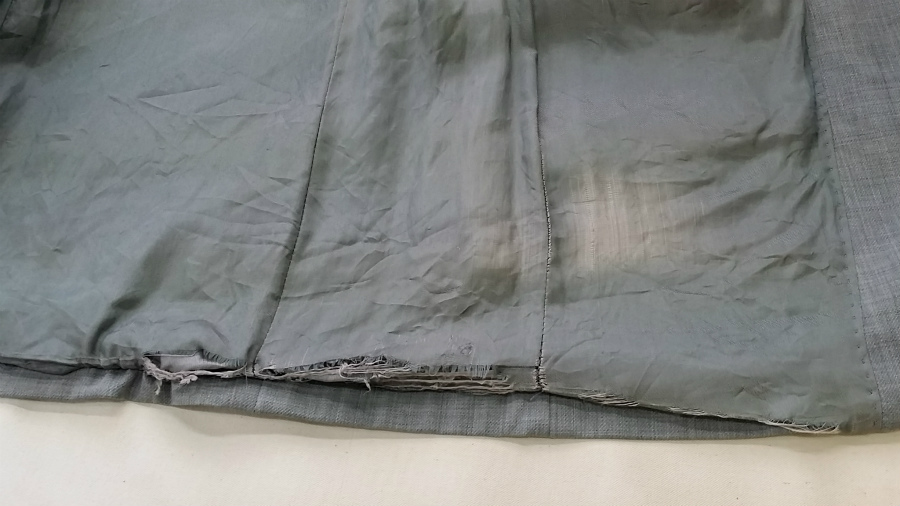 本日は、クリーニングをお預かりした際にご相談頂きました裏地の破れです。