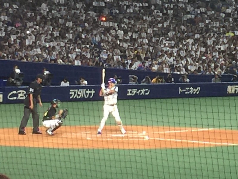 1回裏には、さっそく1番セカンド 荒木の打順、ノーストライク、スリーボールになって現役最後の盗塁が見たい私は、そのまま四球で出塁しろっと思いましたが、さすが荒木!ヒットを放って出塁しました。しかし盗塁を待ってましたが2番 京田がセカンドゴロを打って、ランナーが入れ替わり初回の盗塁はできませんでした。