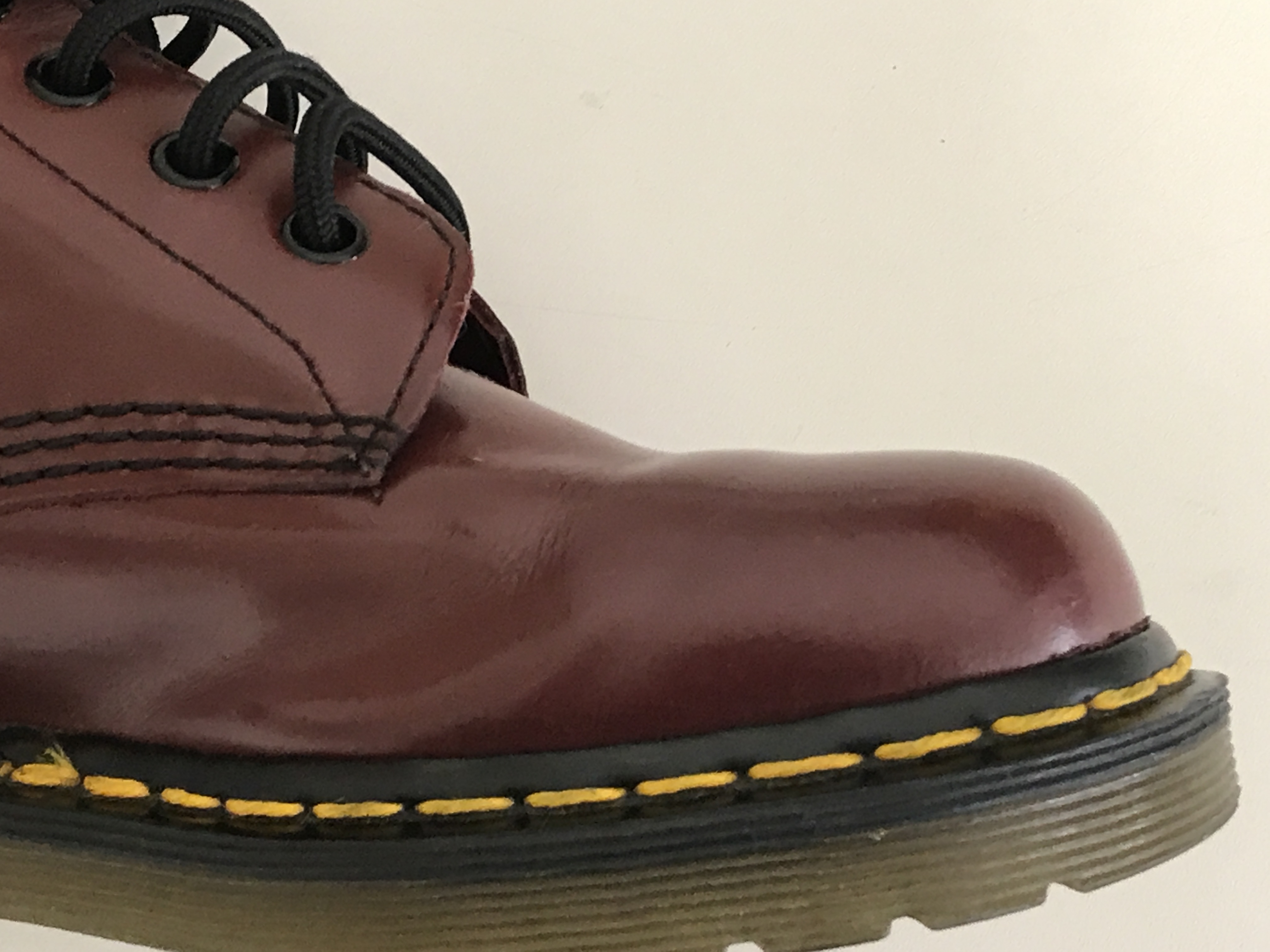 ブーツの内側に擦り傷ができてしまっています。このようになってしまうと表面を一度キレイに平にしてから色修正を行っていきます。