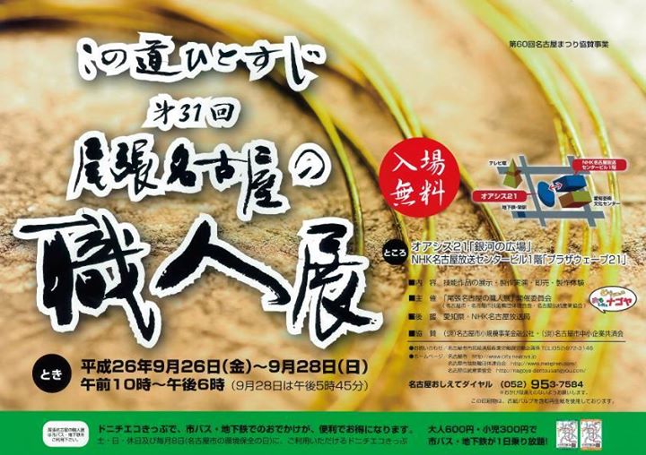 平成26年9月26日(金)~9月28日(日)に名古屋市中区栄オアシス21の銀河の広場にて、尾張名古屋の職人展が開催されます。