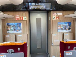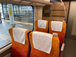 店主の私は3両編成中の1番後ろの1号車自由席に乗車して、1番後ろの席に座りました。