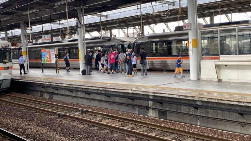よそ者感満載の特急ひだ25号は、発車の直前5分前くらいにホームの入線ですが、福井県内での大雨の影響で金沢行きの特急サンダーバードが終日運休の為、いつもより早くホームに入ってきました。