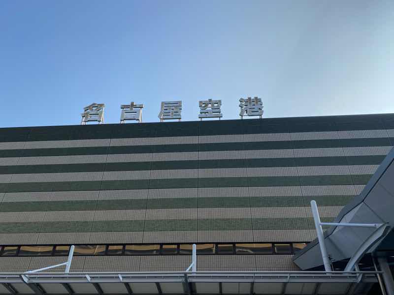 名古屋空港は鉄道でのアクセスはありませんが、街から近くて、名鉄名古屋駅前の道路の向かい側(ミッドランドスクエア前)からバスに乗って約20分で到着します。