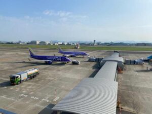 今回は鉄ちゃんの店主の私も飛行機で行きました。