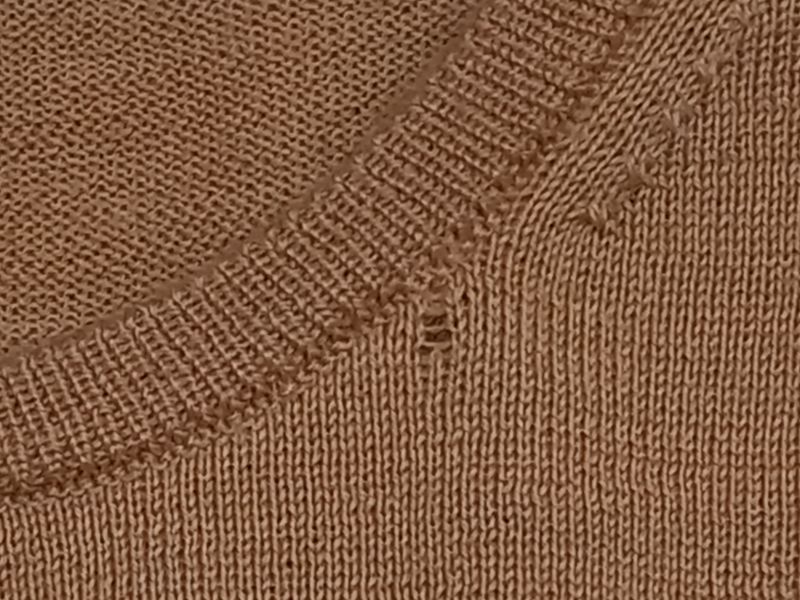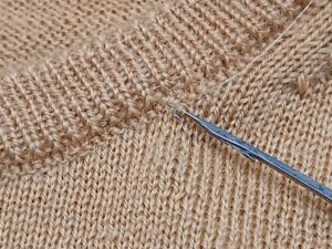 さて、本日のお直しは着心地の良い柔らかいセーターの襟元に穴が空いてしまったお直しです。