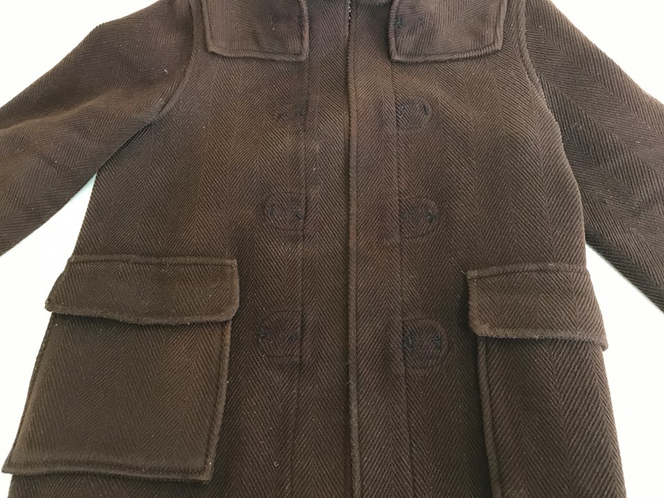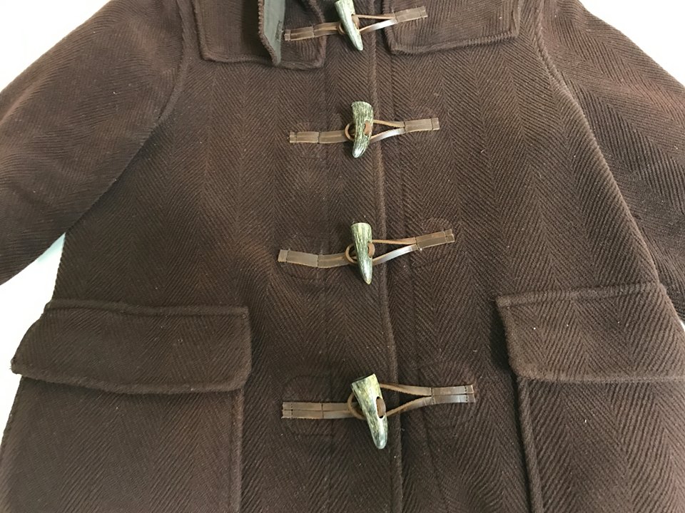 本日は、ダッフルコ-トの革ル-プ周辺が色抜けしている商品の色修正の修復の事例をご紹介します。