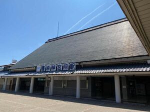 駅の外に出たら、広場とお土産物屋さんが並んでいます。