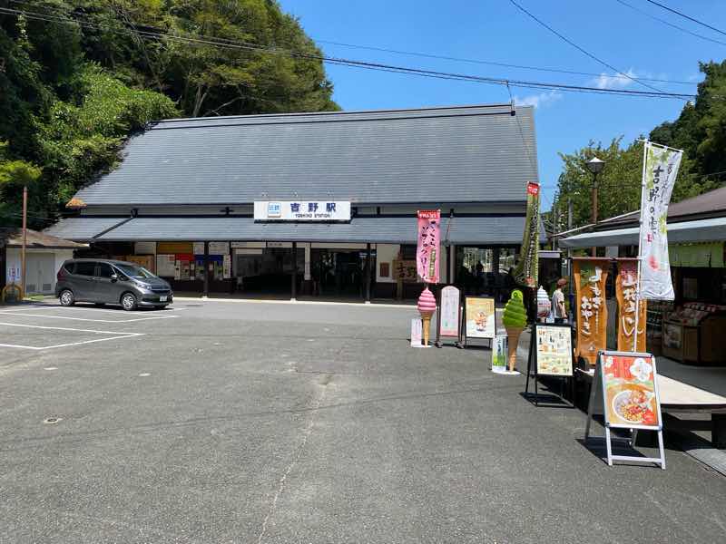 吉野山全体を含む「紀伊山地の霊場と参詣道」が、ユネスコの世界遺産に認定されていますが、駅前から乗れるロープウェイで山の上まで行って、吉野水分神社・金峯神社・金峯山寺・吉水神社などを回るほどは時間がないので、諦めて駅に戻ります。