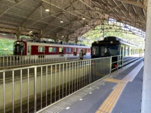 吉野駅は関西の終着駅のイメージ通りのくし形の頭端式ホームが並んで、駅舎の近くは大きな屋根がかかっている雰囲気がいい駅でした。