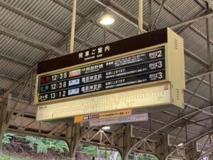駅前の食堂で山菜そばを食べてから駅構内に入りました。