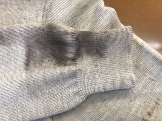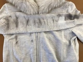 今回は誤ってヘアパウダ-が衣類に付着してしまったご依頼品です。