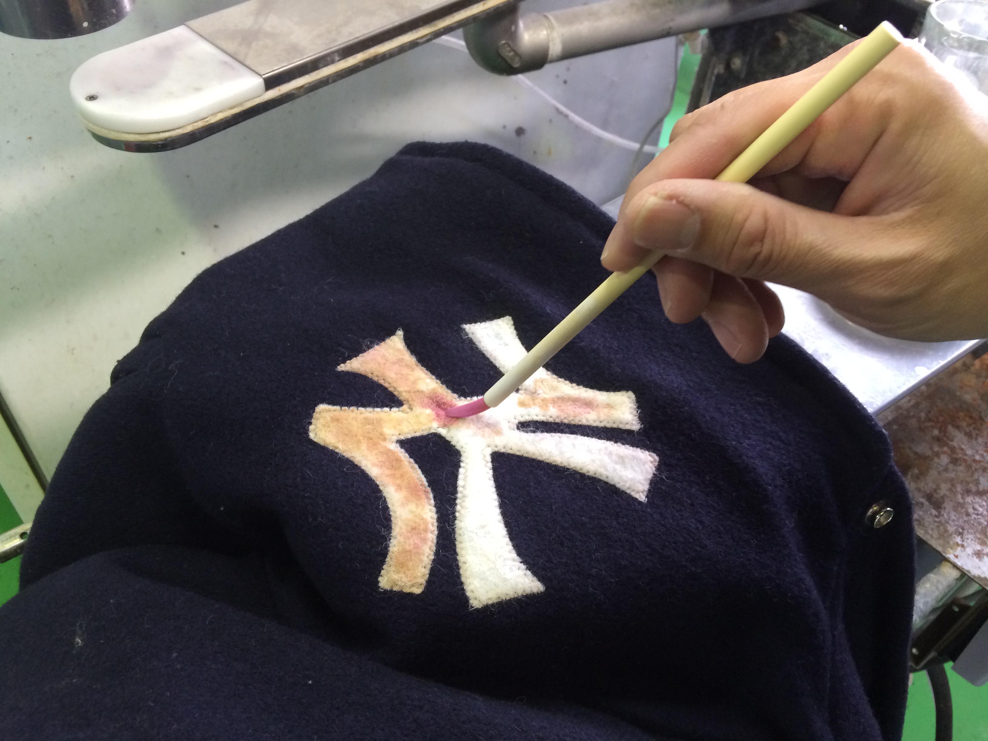 本日は、ヤンキ-スのウールジャンバ-のエンブレムの黄ばみのご依頼品を紹介します。
