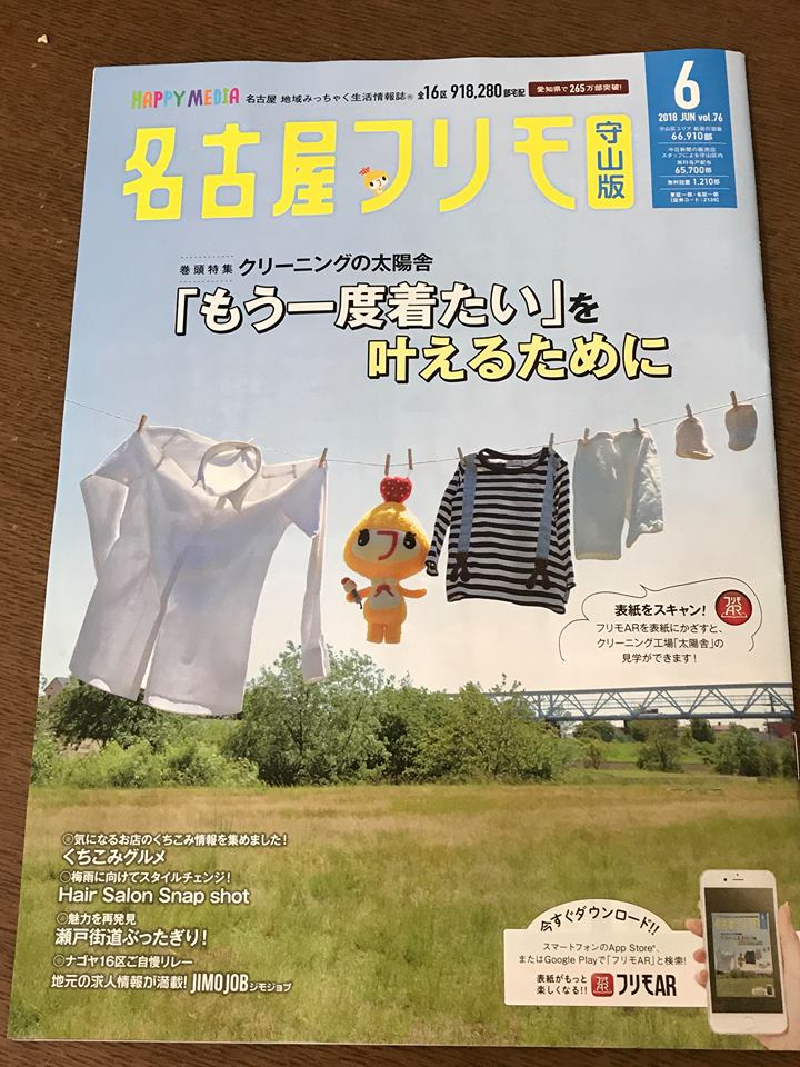 先日、地域みっちゃく生活情報雑誌「名古屋フリモ」の取材があり、6月号の巻頭特集にクリーニングの太陽舎が掲載されました。