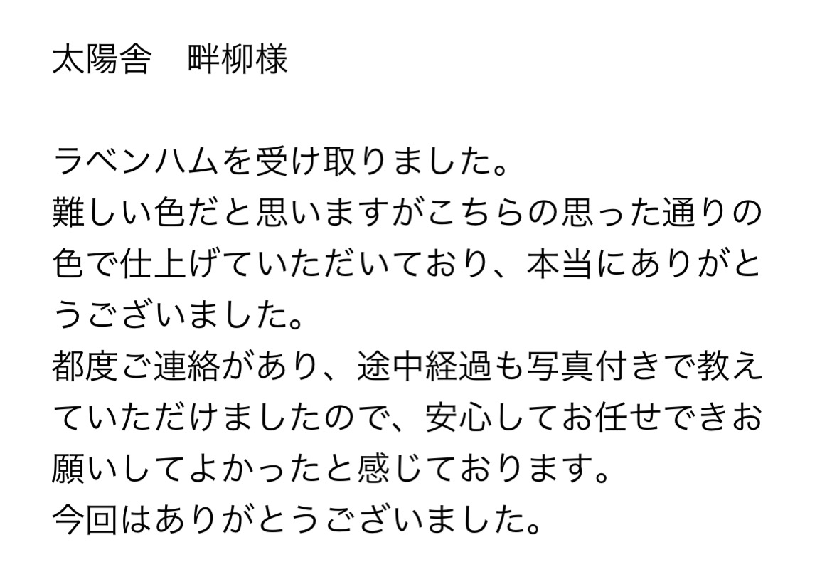ト-タルファッションケア太陽舎 本店 修復師の畔柳(クロヤナギ)です。