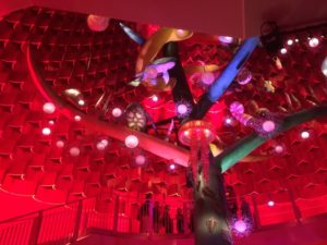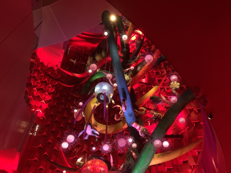 中に入ると巨大なオブジェの『生命の樹』があります。下から上の方へ、生命の進化の過程が表現されていて、色使いや大きさなどの迫力に圧倒されます。万博終了後から約50年間封印されてた空間でタイムスリップしたような感覚も味わえます。