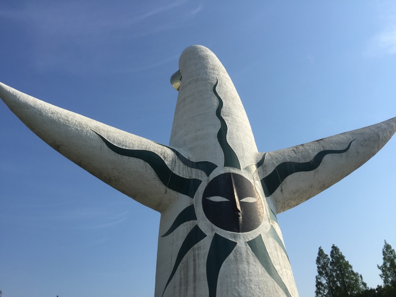 太陽の塔は、店主の私が生まれるちょっと前の1970年に行われた日本万国博覧会(大阪万博)に岡本太郎さんのデザインで作られた作品という事は知ってましたが、見たのは去年、万博記念公園のとなりのエキスポシティに行った時に、園外から眺めたのが初めてでした。
