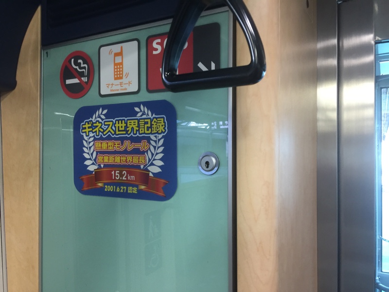 車内で発見したのですが、懸垂式モノレールの営業距離世界最長のギネス記録のステッカーが貼ってありました。