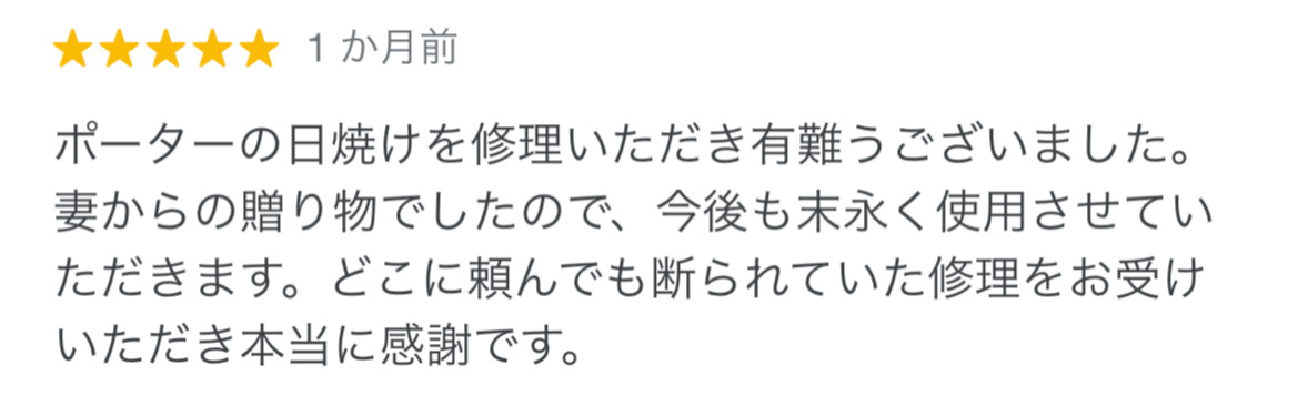 お客様には、「もう一度使える!」とお喜びの言葉を頂けました。