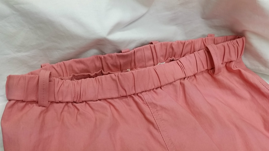 そこで、七分に丈詰めをして、不要になった生地を利用してウエストの伸縮生地を固定しない様に、ベルトループを取り付けさせて頂きました♪