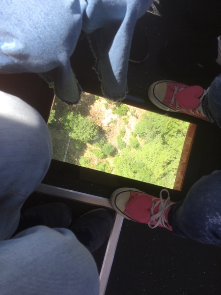 今年の夏にリニューアルで導入された新ゴンドラ(全36両のうちの10両が新ゴンドラ)に乗れました。窓は従来型よりも大きく、下の景色が見れるように床にガラス窓が付いてました。ゴンドラから地面までかなりの高さがあるので、なかなかのスリルが味わえますよ。