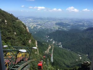 標高1,180mの山頂駅に到着しゴンドラから降りると、地上よりも10℃近く温度が低い事前の情報からの期待値より意外と涼しくなく、ちょっとガッカリしました。(25℃くらいでした。でも下山したら汗がダラダラで山頂の涼しさが分かりましたよ。)