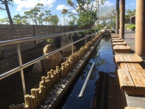 途中、我が家では毎度おなじみの長島パーキングエリアで安永餅をお土産に買って、無料の足湯につかり癒されました。