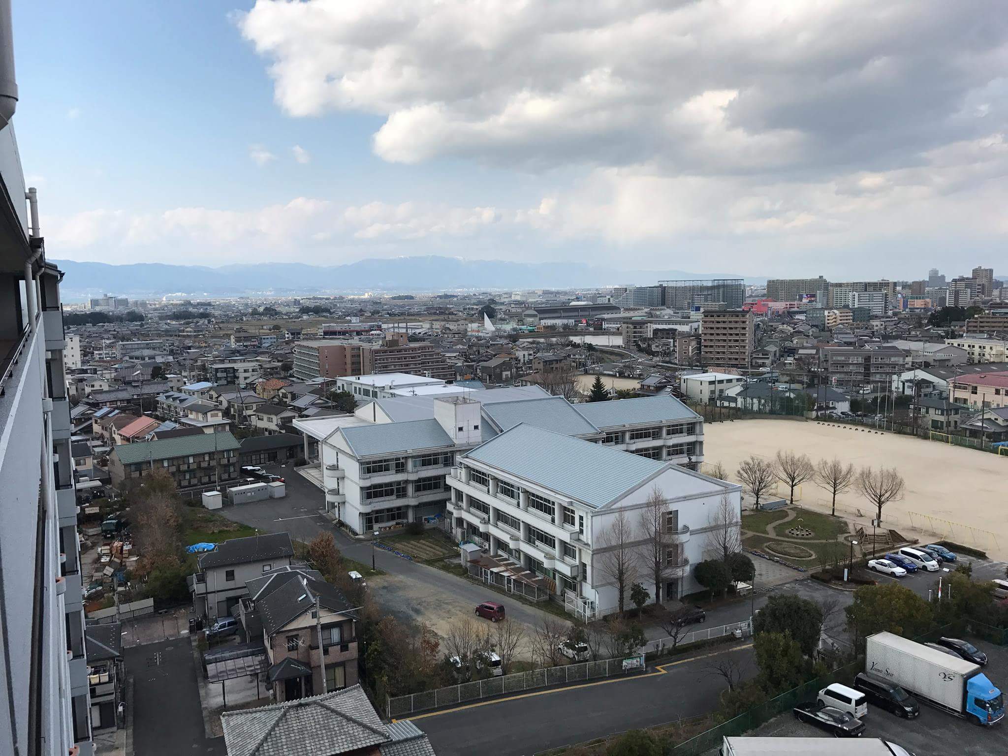 遠くに琵琶湖が見えて、下には小学校もあり素晴らしい環境です。この地でこれからの大学生活4年間、多くの人で出会い・学び・経験し、一生涯の宝を見つけて欲しいなぁと思います(^.^)