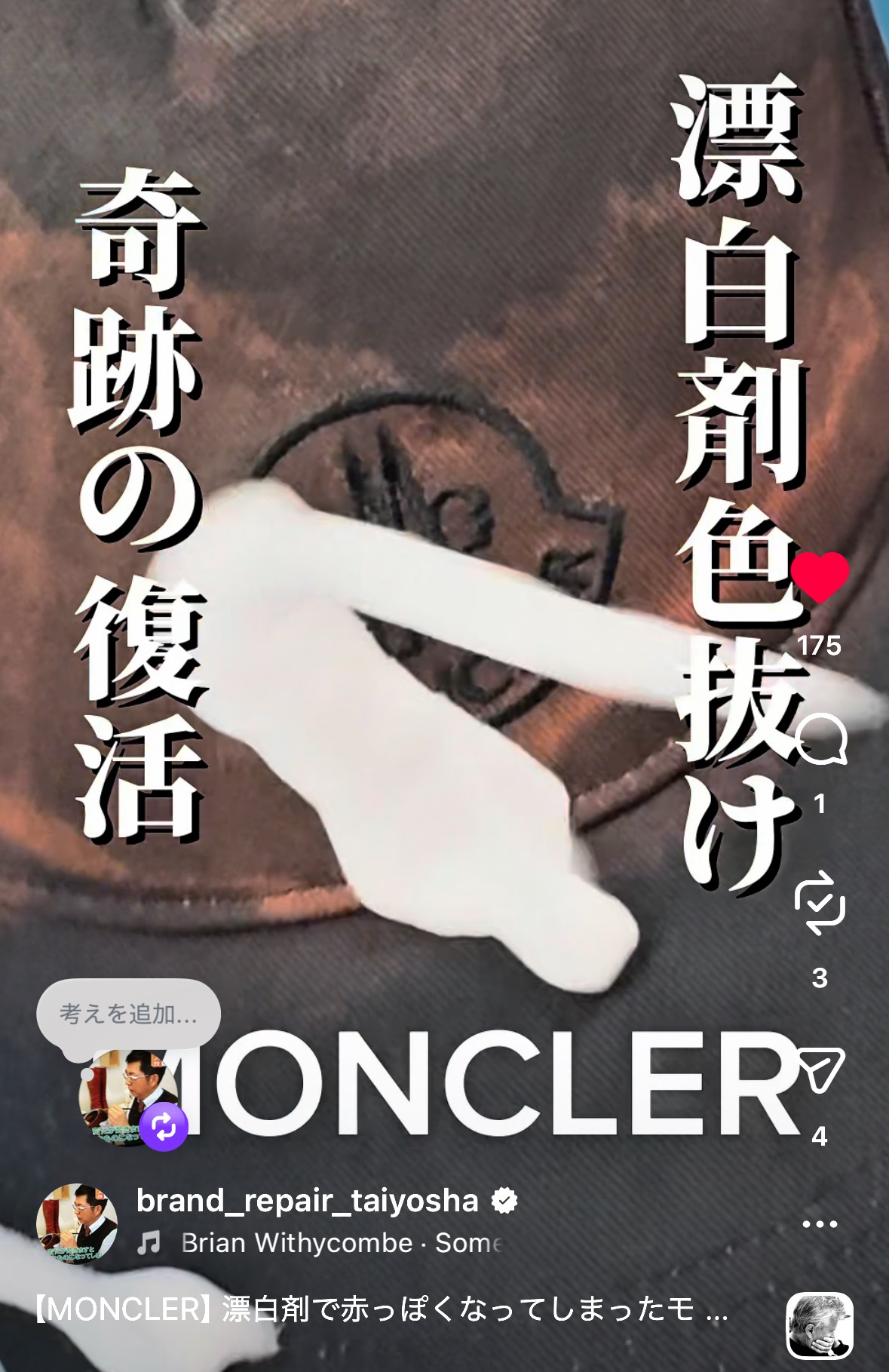 それではMONCLERの染め直しの修復動画をご覧下さい!